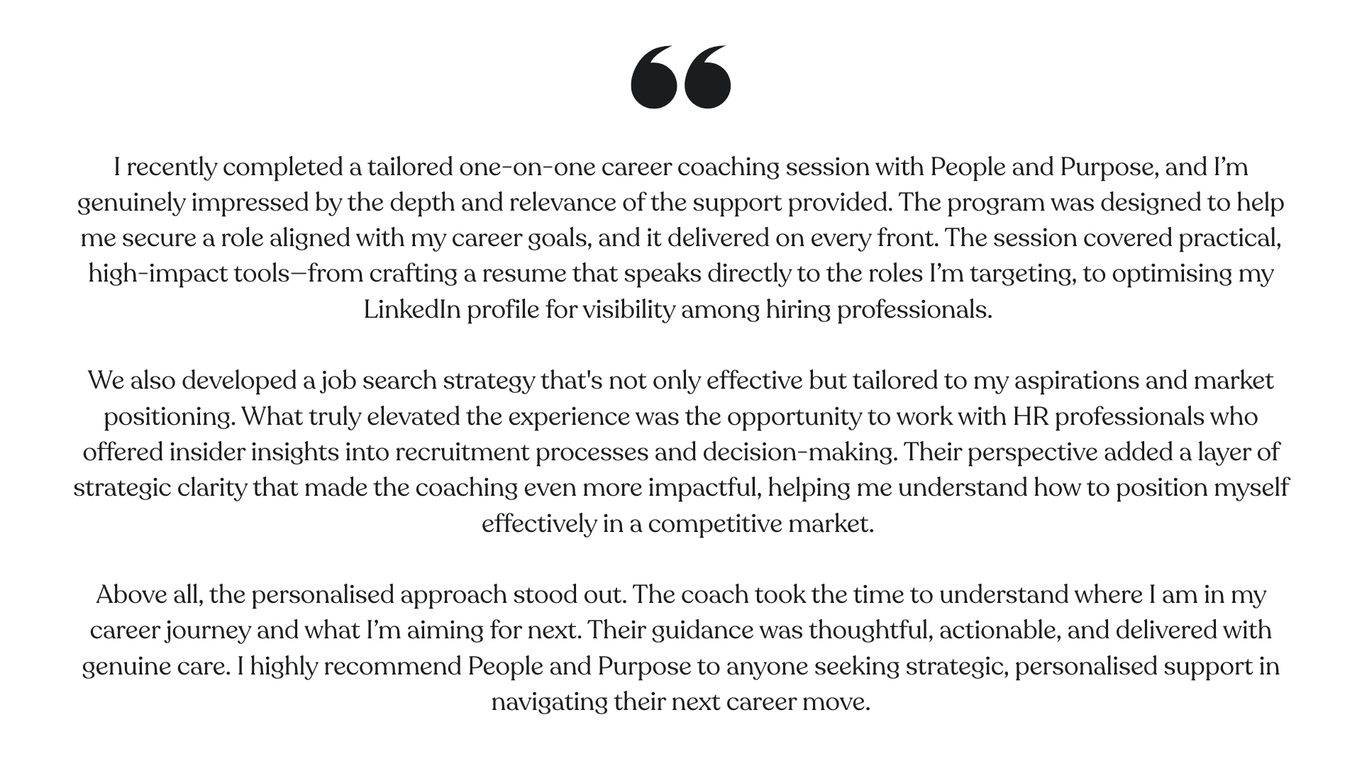 Ideal if you are changing industries or looking for a major step up. Includes extended access to your AI Accountability Coach to ensure you don’t just find any job, but the right one.