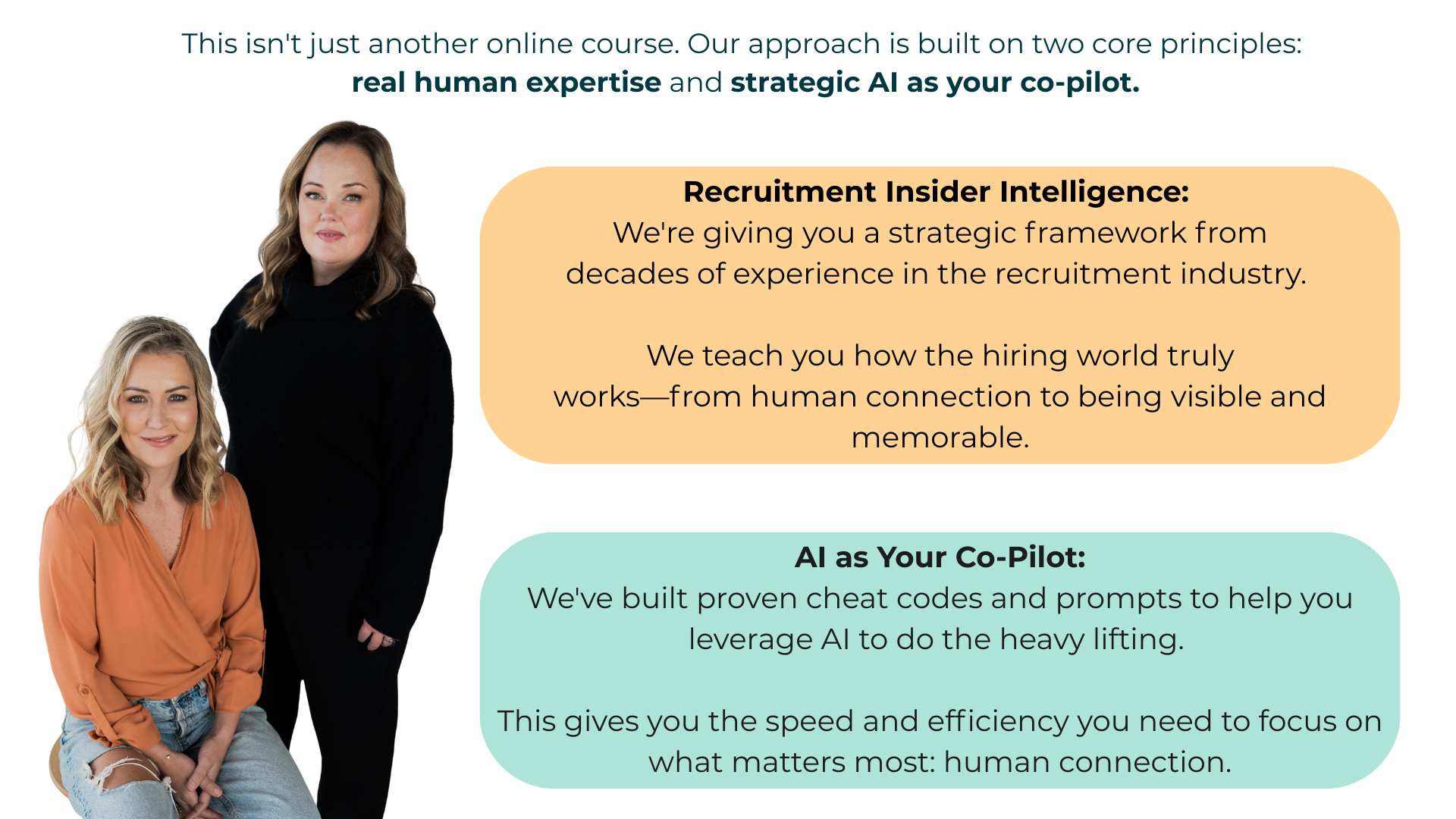 We move away from the generic advice and focus on a modern, strategic approach that includes leveraging AI, building human connections, and finding purpose. We also offer a live, supportive community.